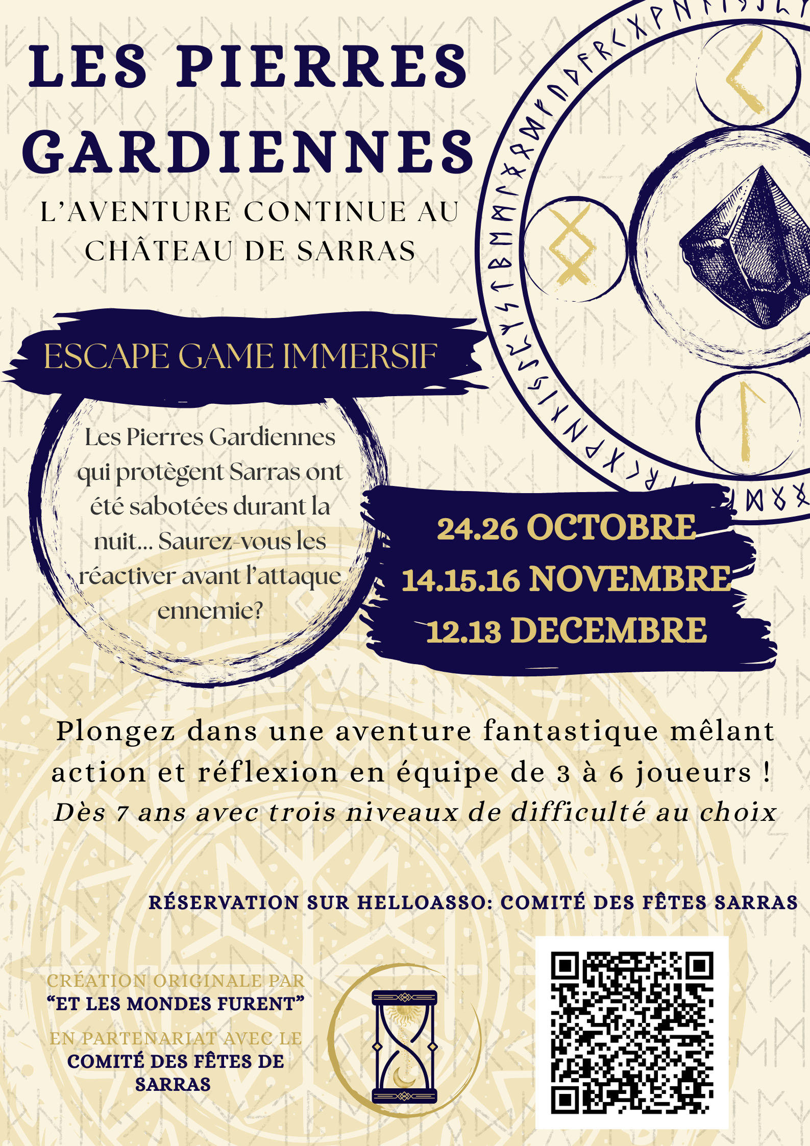 Après le succès des trois premiers week-ends de cet été 2025, voici les nouvelles dates pour venir vivre l'aventure des "Pierres Gardiennes". Un Escape Game immersif qui plongera votre équipe de 3 à 6 joueurs dans un univers médiéval fantastique pour une aventure de 1h30.